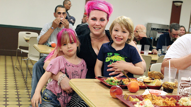 Dani and her children, Mena and Jareth, were having dinner at UGM toward the end of the month. "We're at that point in the month where we don't have any food in the house other than ramen and macaroni and cheese. Everybody is really nice," Dani said, "and the kids get to eat first."